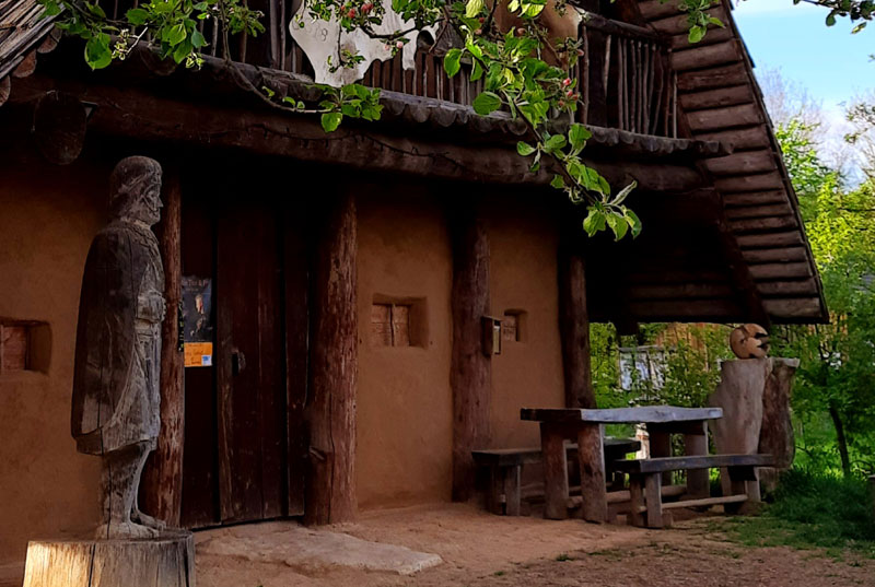 Neben dem vorgeschichtlichen Gebäude wird ein prähistorischer funktionstüchtiger Lehmofen zum Backen nachgebaut, der im Rahmen von Veranstaltungen, die der Verein Alcmona anbietet, genutzt werden kann. (nach Michael M. Rind/Ruth Sandner, Archäologiepark Altmühltal. Ein Reiseführer in die Vorzeit)